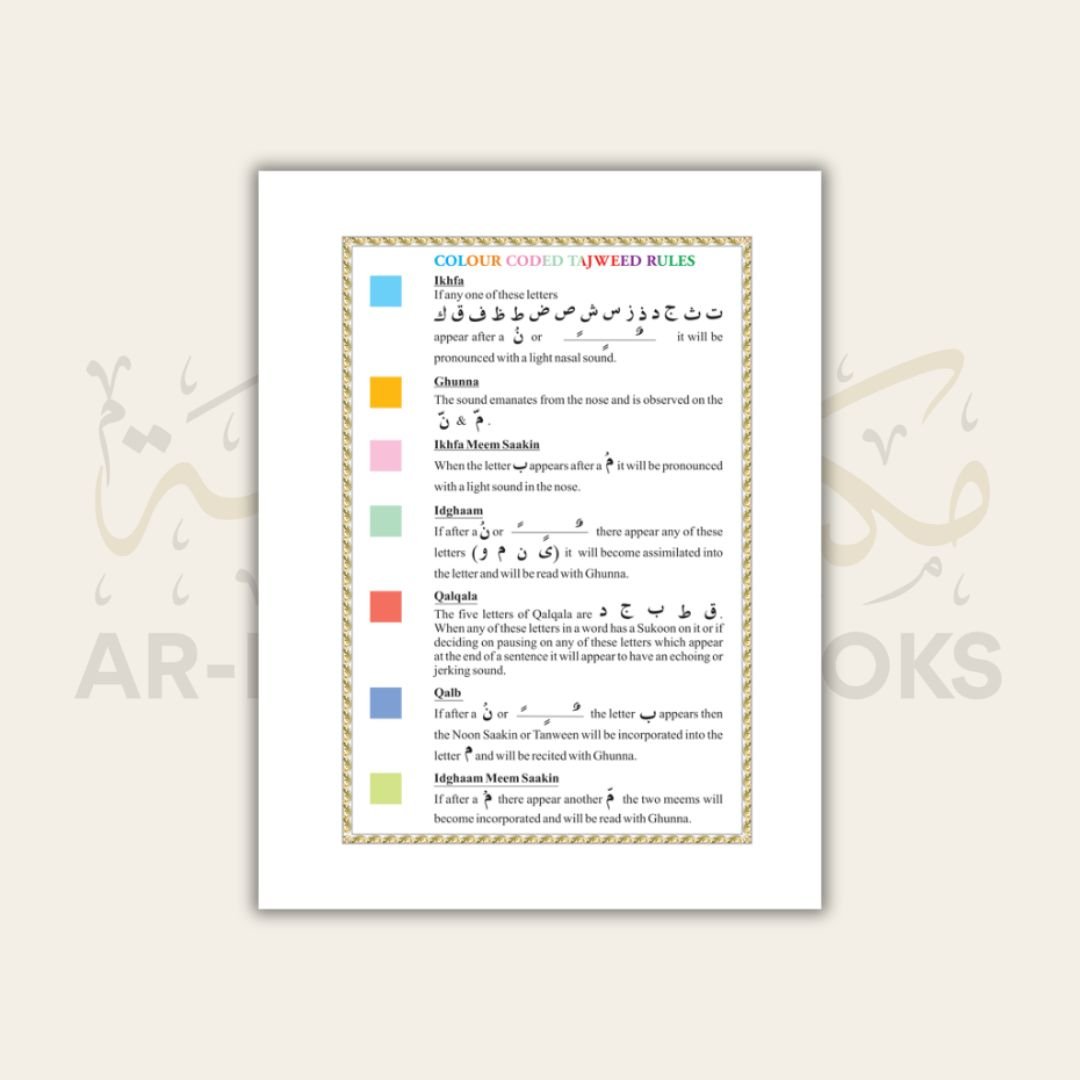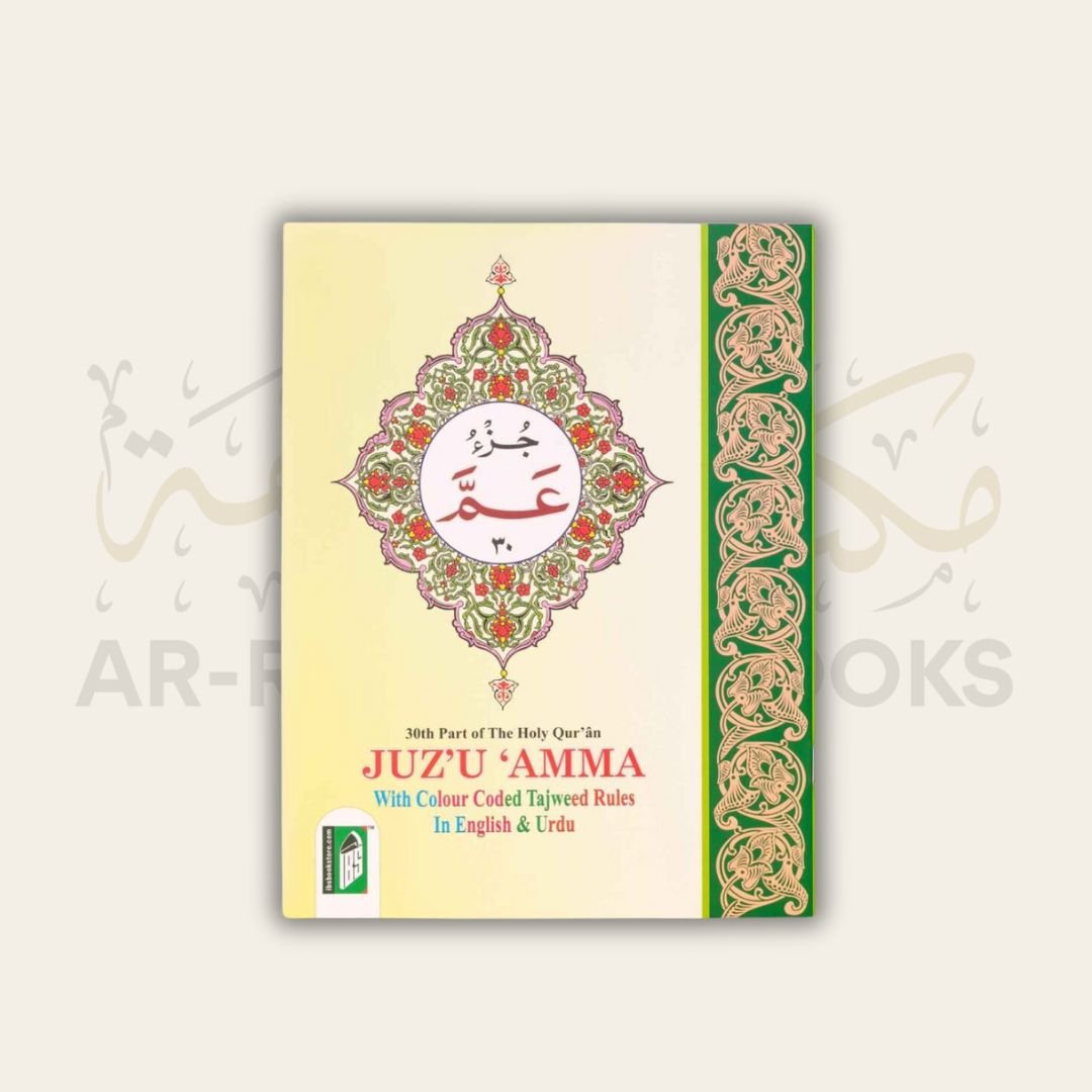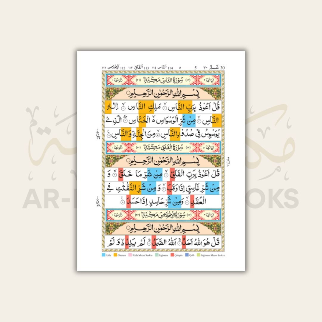 13-Line Juz ʿAmma with color coded Tajweed Rules. Thick semi-glossy paper and clear print. Special Discount for Masjids and Schools!