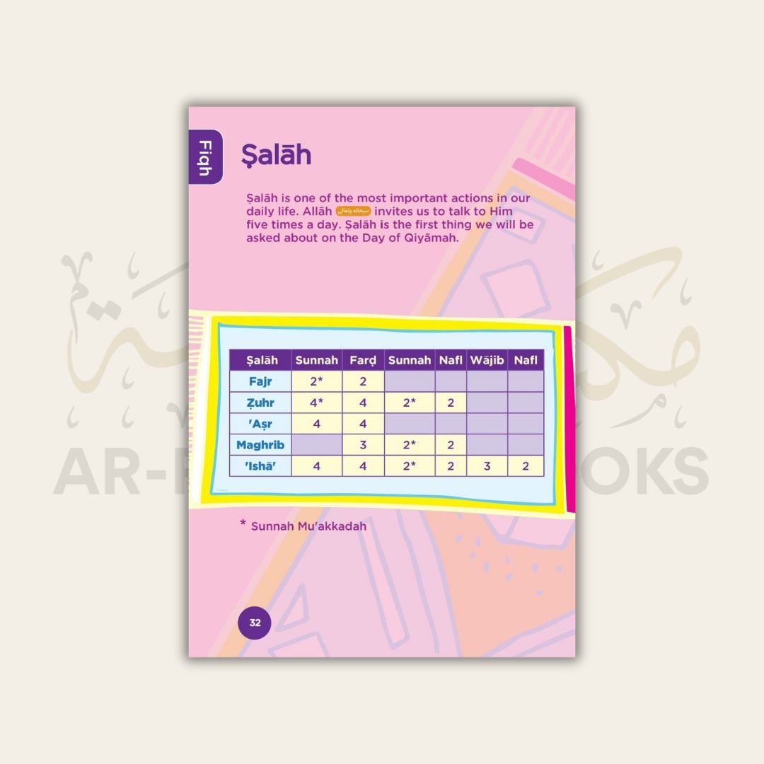 Fiqh | Keywords, Types of Najasah | Ghusl: Fara’id, Sunan and Method, Rak’at of Salah, Conditions of Salah, Nawaqid of Salah, Method of Salah, Salatul Witr, Salatul Qasr, Salatul Musafir, Salatul Marid |