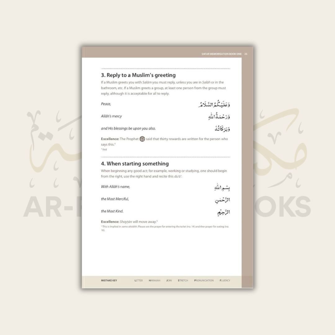 The Safar Learn by Heart series is a set of concise but comprehensive books that help students memorize surahs and duas taught by our beloved Prophet Muhammad (saaws). It was the Sunnah of the Prophet (saaws) to remain in Allah’s remembrance throughout the entire day and this series has been designed to enable students to revive this blessed Sunnah. From morning until evening and from one Islamic occasion to another, the series teaches authentic duas along with their English translation in an easy to understand way.