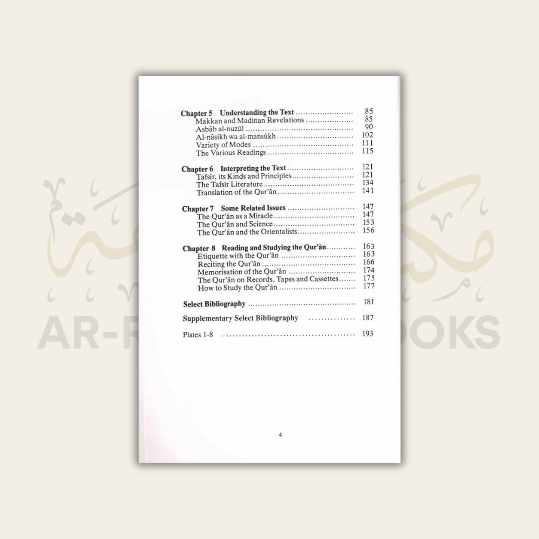 The author has taken care to draw special attention to topics relevant to the contemporary reader such as Orientalists and the Quran, translations of the Quran, modern interpretation of the Quran. language of the Qur’an, and the reading and recitation of the Quran.